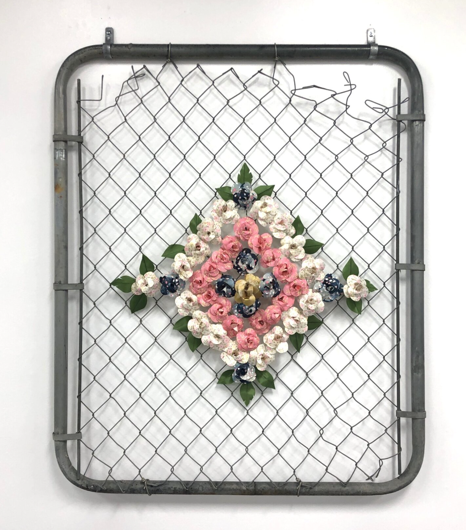 When This is Over, 2021 washi paper, floral wire, ribbon on found fence