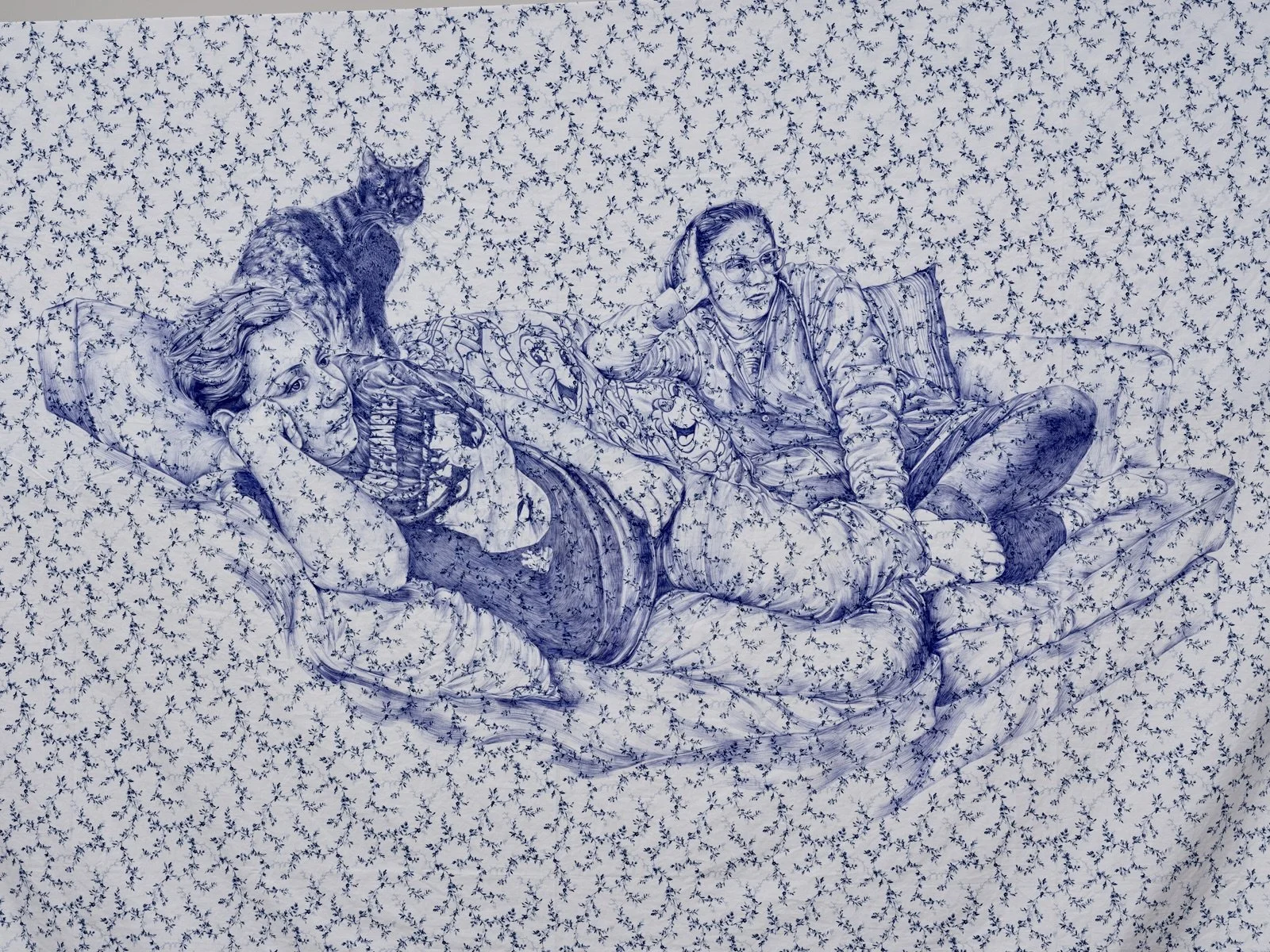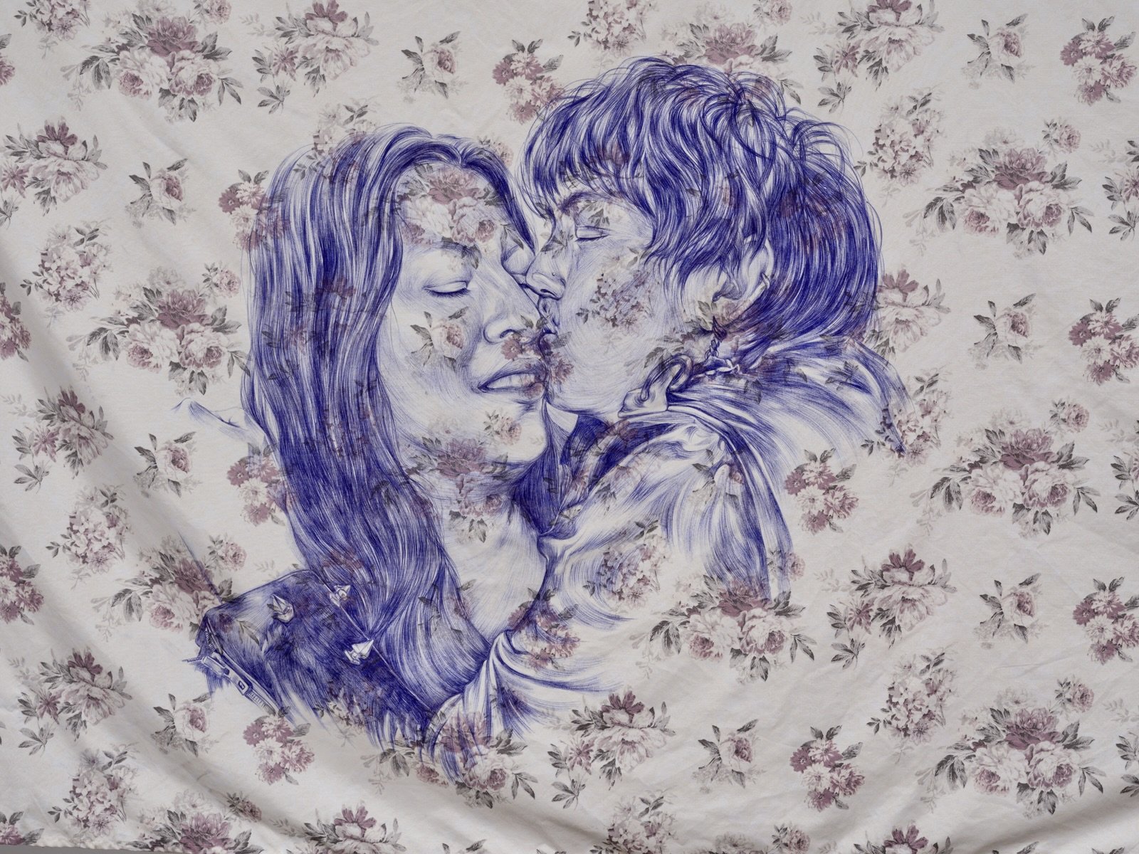 2024 Ballpoint pen on found bedsheets